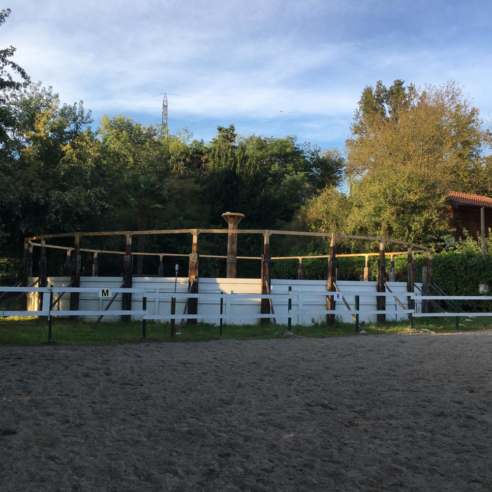 Con scuderia in legno, con box 3m x 3m con paglia, campo in sabbia e tondino di 18 m, club house e paddock esterni e bellissime passeggiate nei dintorni